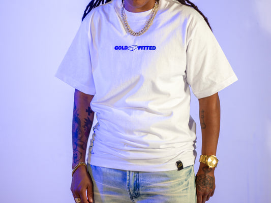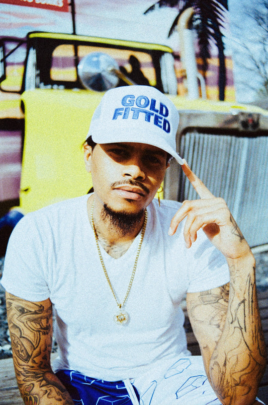 Gold Fitted Trucker Hat – White/Royal